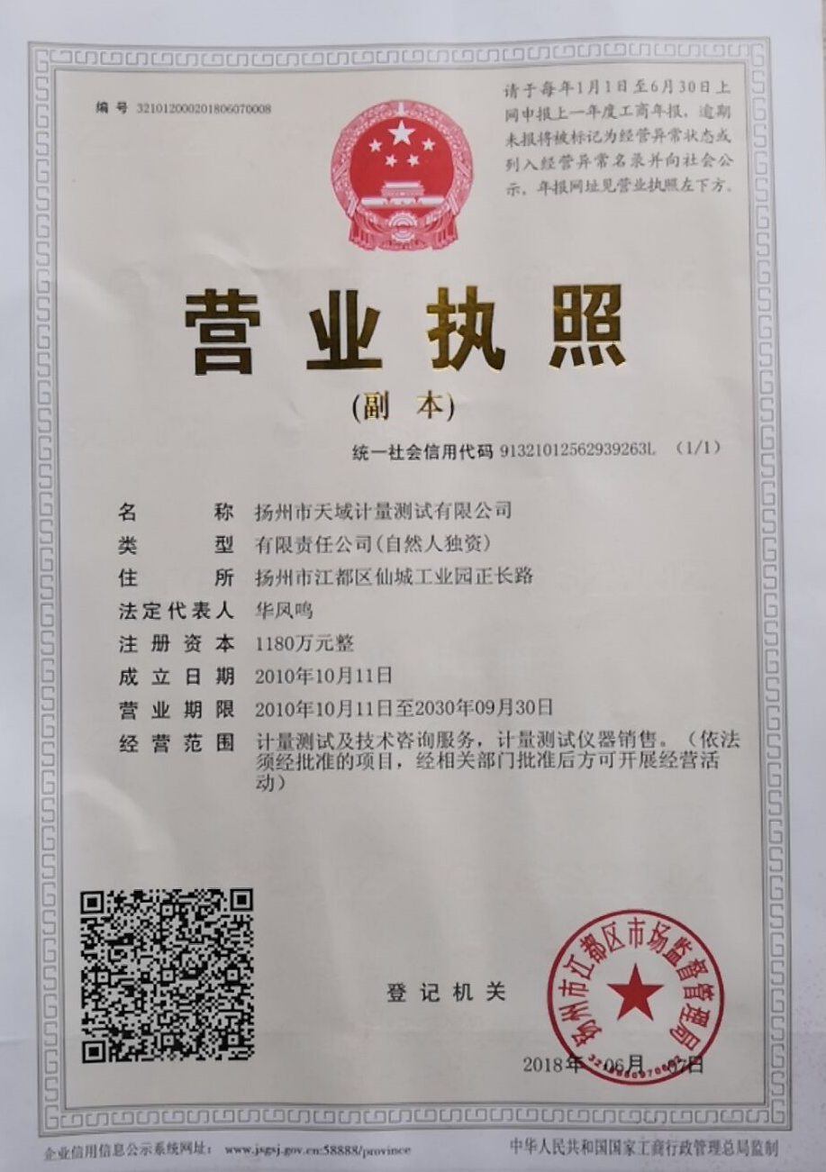 揚州市天域計量測試有限公司,坐落在交通便利的揚州市江都區(qū)仙城工業(yè)園,成立于2010年10月,2011年11月正式獲取中國合格評定國家認(rèn)可委員會認(rèn)可(授權(quán)),注冊號:CNAS L5296。近幾年的發(fā)展,實驗室已具備了較大規(guī)模,并形成了集計量器具檢測,計量技術(shù)咨詢和計量器具銷售為一體的專業(yè)化技術(shù)機構(gòu),客戶覆蓋蘇南、蘇北、和浙江,安徽部分地區(qū),客戶群總量達到了上千家企事業(yè)單位。實驗室建立健全了一套較為完整的內(nèi)外部質(zhì)量管理體系,至今未發(fā)生糾紛和客戶投訴事件。